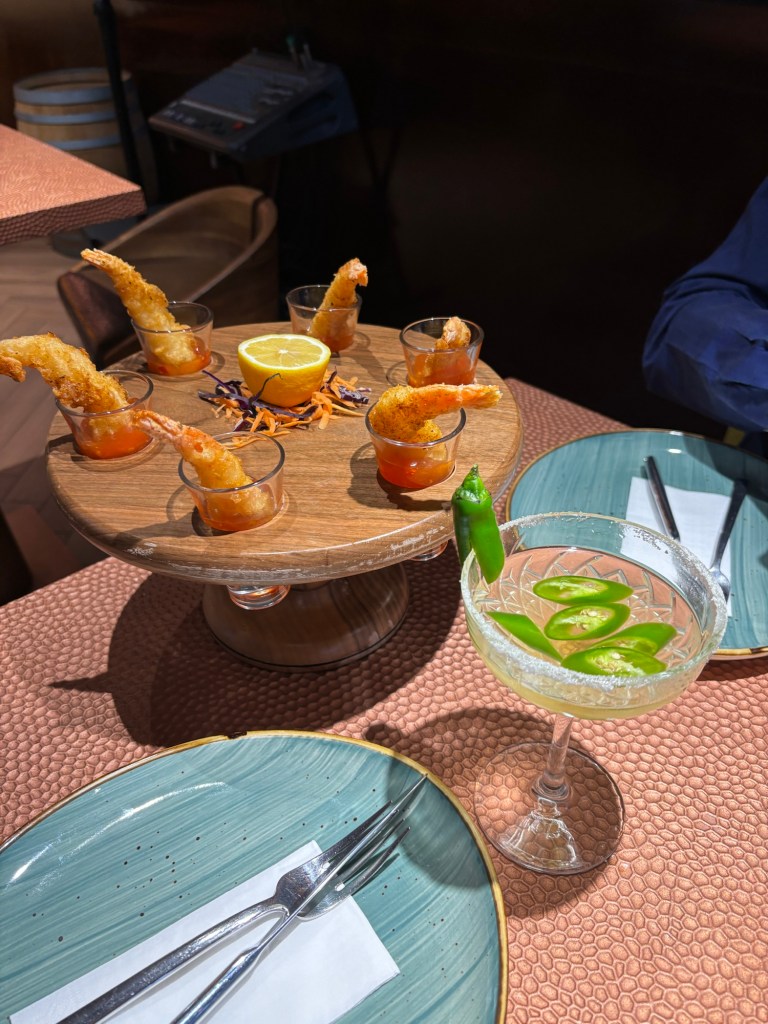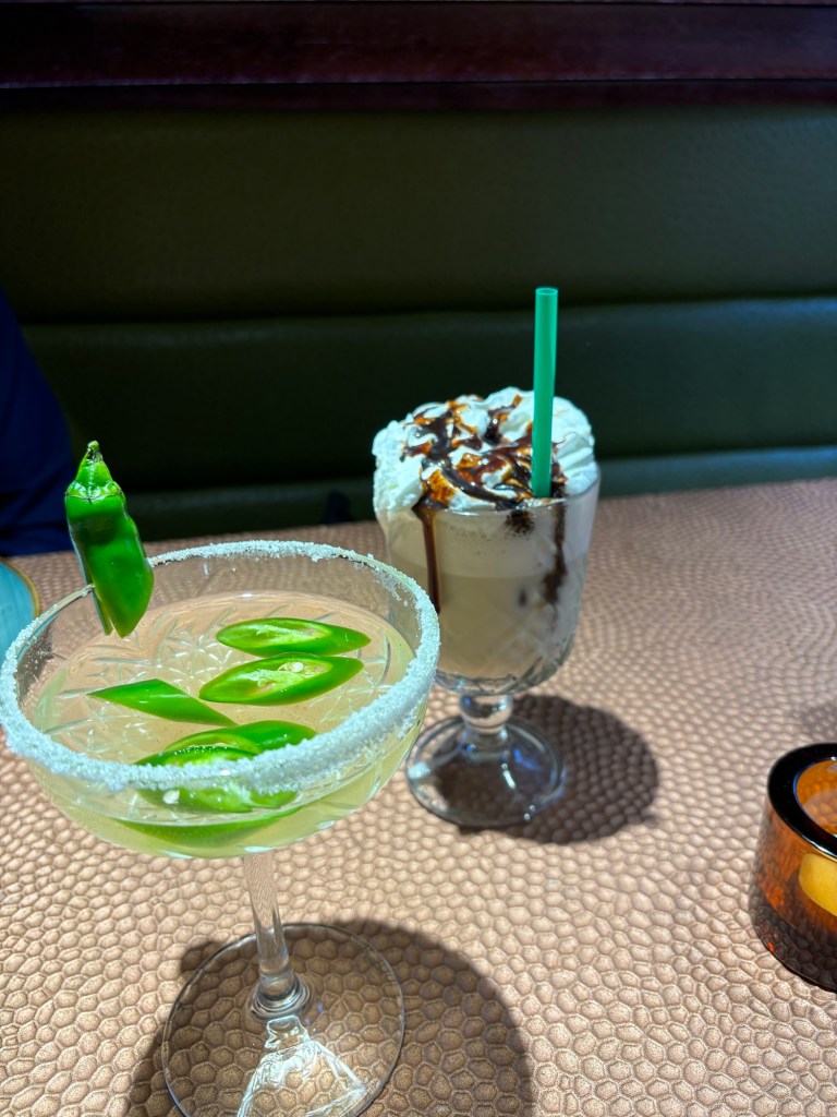 We love all things hot and zingy, so immediately gravitate towards the drinks that include a bit of spice in the ingredient list: a Pepper Margarita and a Hiki-Tiki. The Margarita definitely packs a punch, thanks to the very many slices of fresh jalapeño peppers that float in it, but it lacks acidity: a good squirt of lime would lift it and make it so much more delicious. The Hiki-Tiki is a milky chocolaty concoction that comes with a veritable mound of whipped cream, but it does boast Tabasco hot sauce among its ingredients (albeit its flavour is smothered by the sugar, so it is hard to taste).